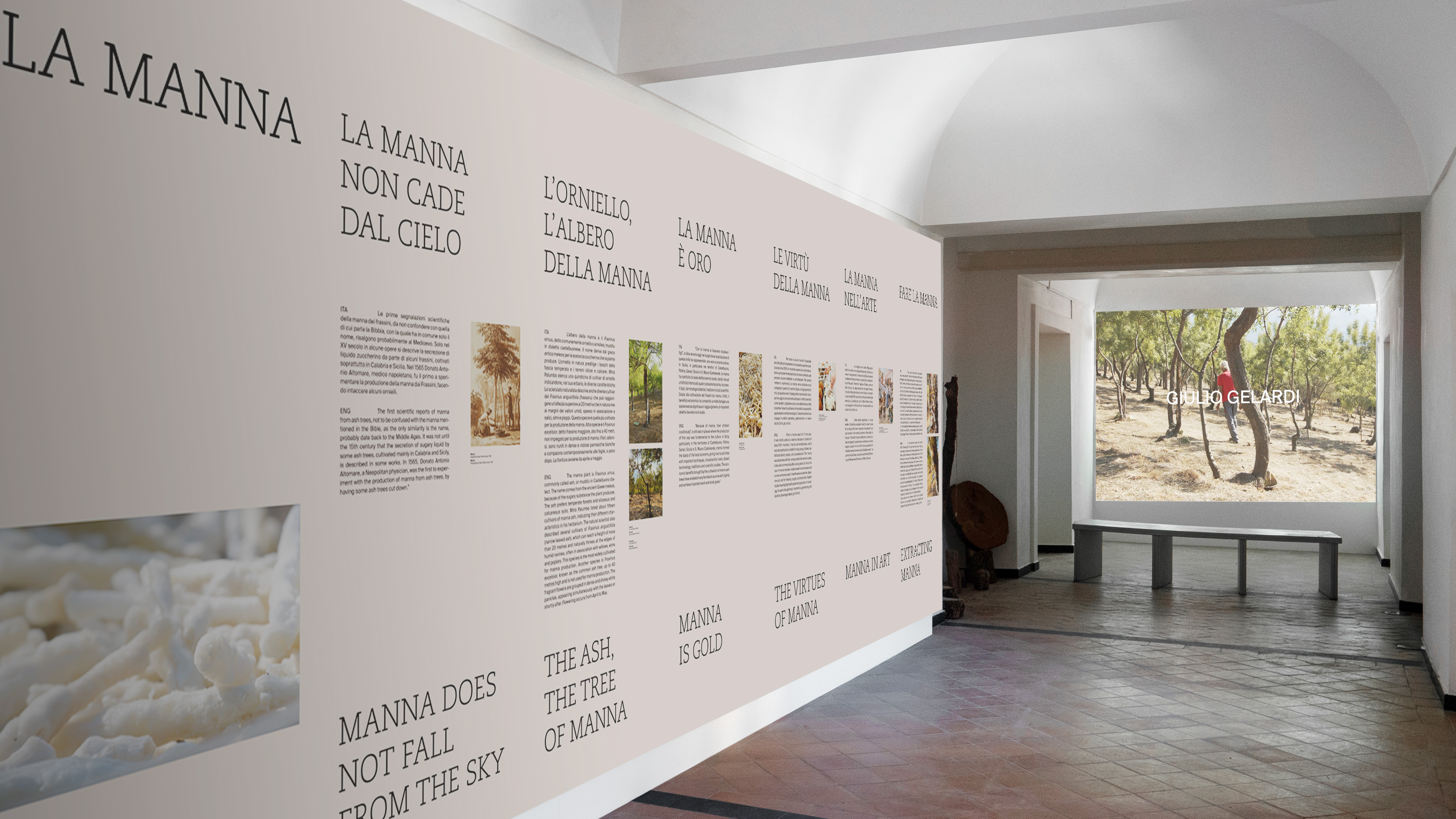 A second video-diorama focuses on the manna, a rare vegetal product deeply rooted in local culture. Through immersive storytelling, visitors encounter two generations of cultivators: an elder master who “dialogues” with the ash trees and a younger farmer who adopts a more scientific approach.