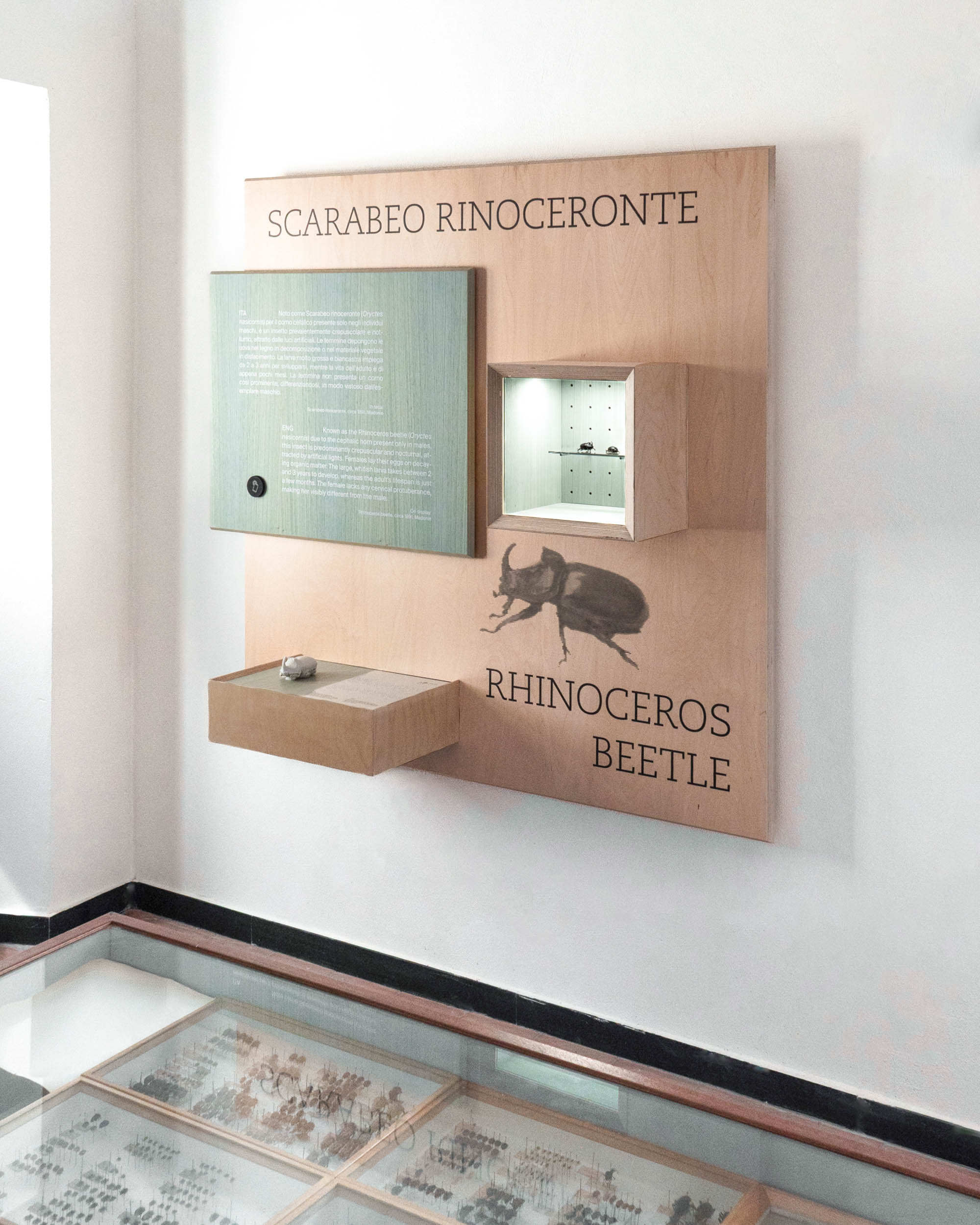 Accessibility is the project's founding principle. Display cases, panels and illustrations are positioned at heights suitable for visitors with motor disabilities, ensuring direct and non-hierarchical access to the collections.