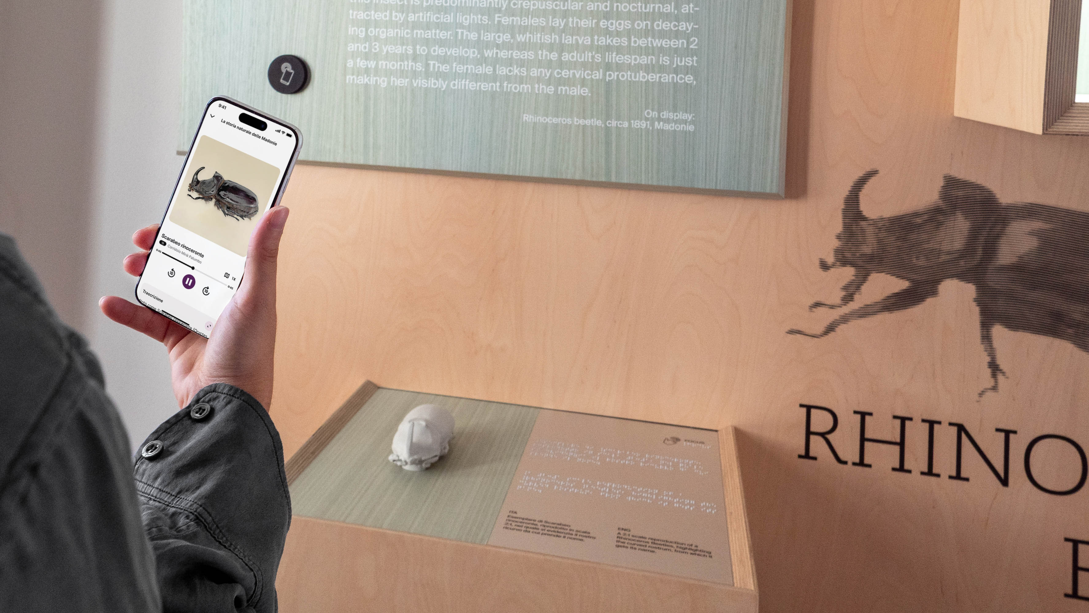 For deeper insights, visitors can approach their phone to discreet sensors embedded in the exhibition: additional materials activate without touching the screen. The technology remains invisible, supporting a fluid and intuitive visit.